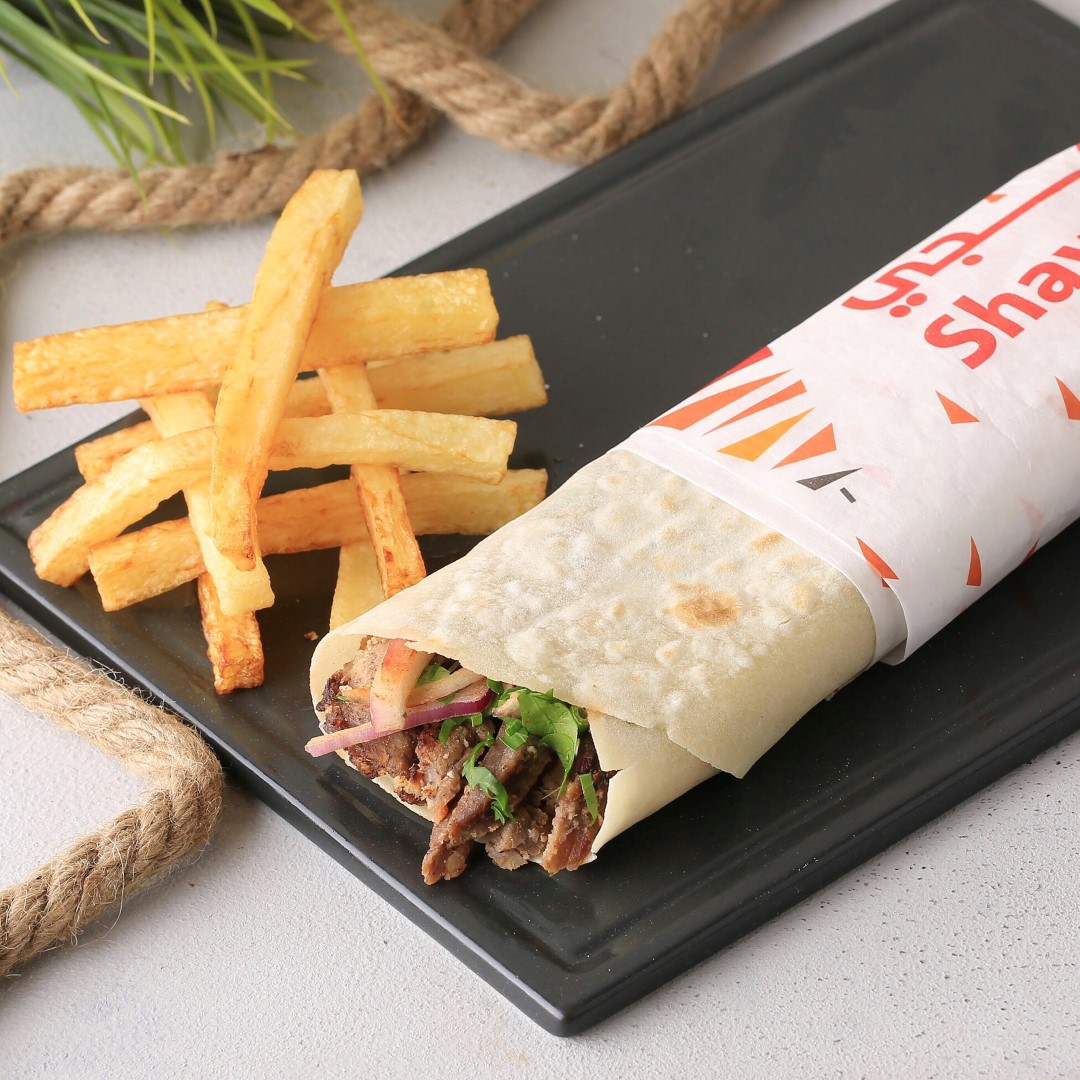 ساندوتش شاورما دجاج بخبز الصامولي مع بطاطس وبيبسي